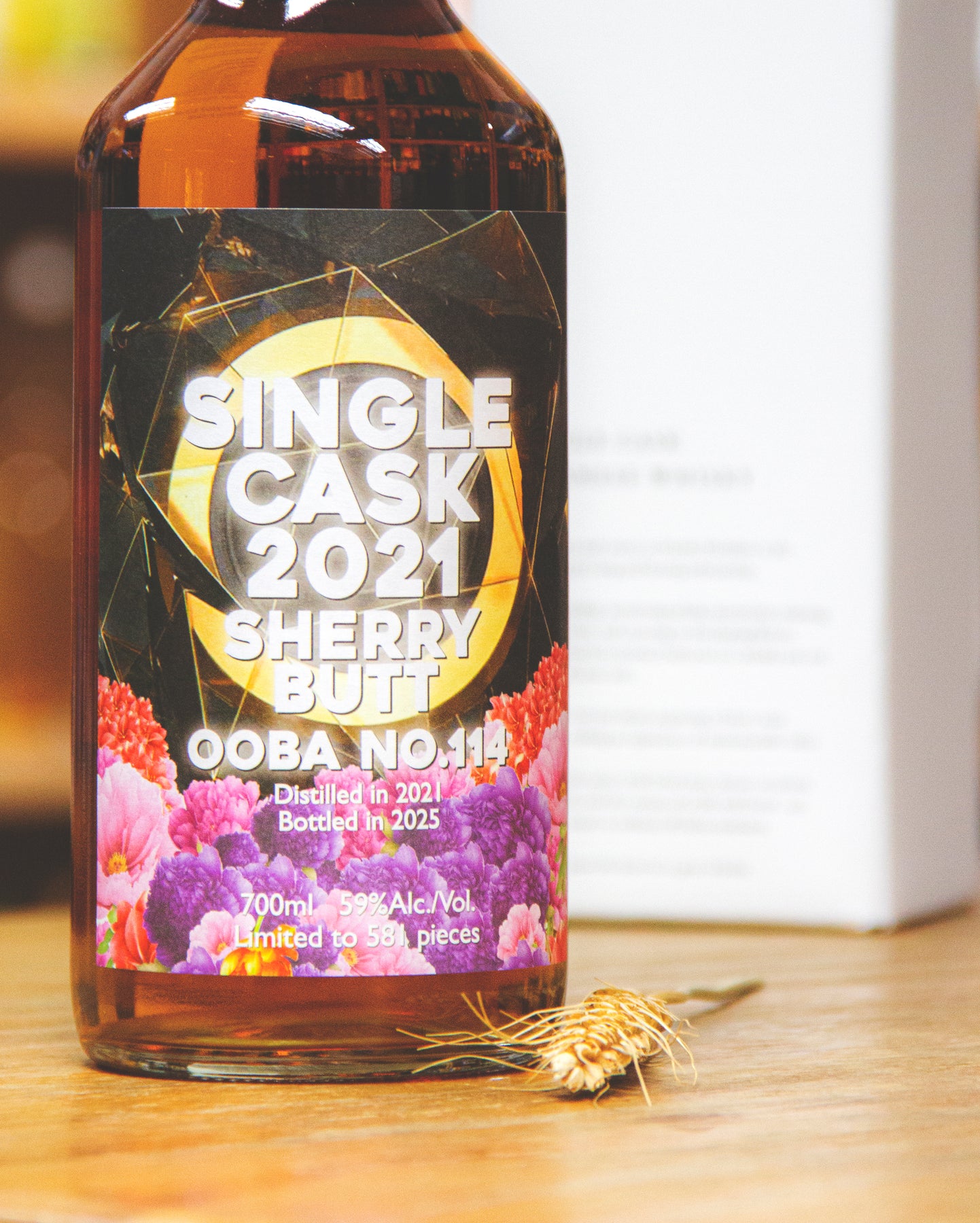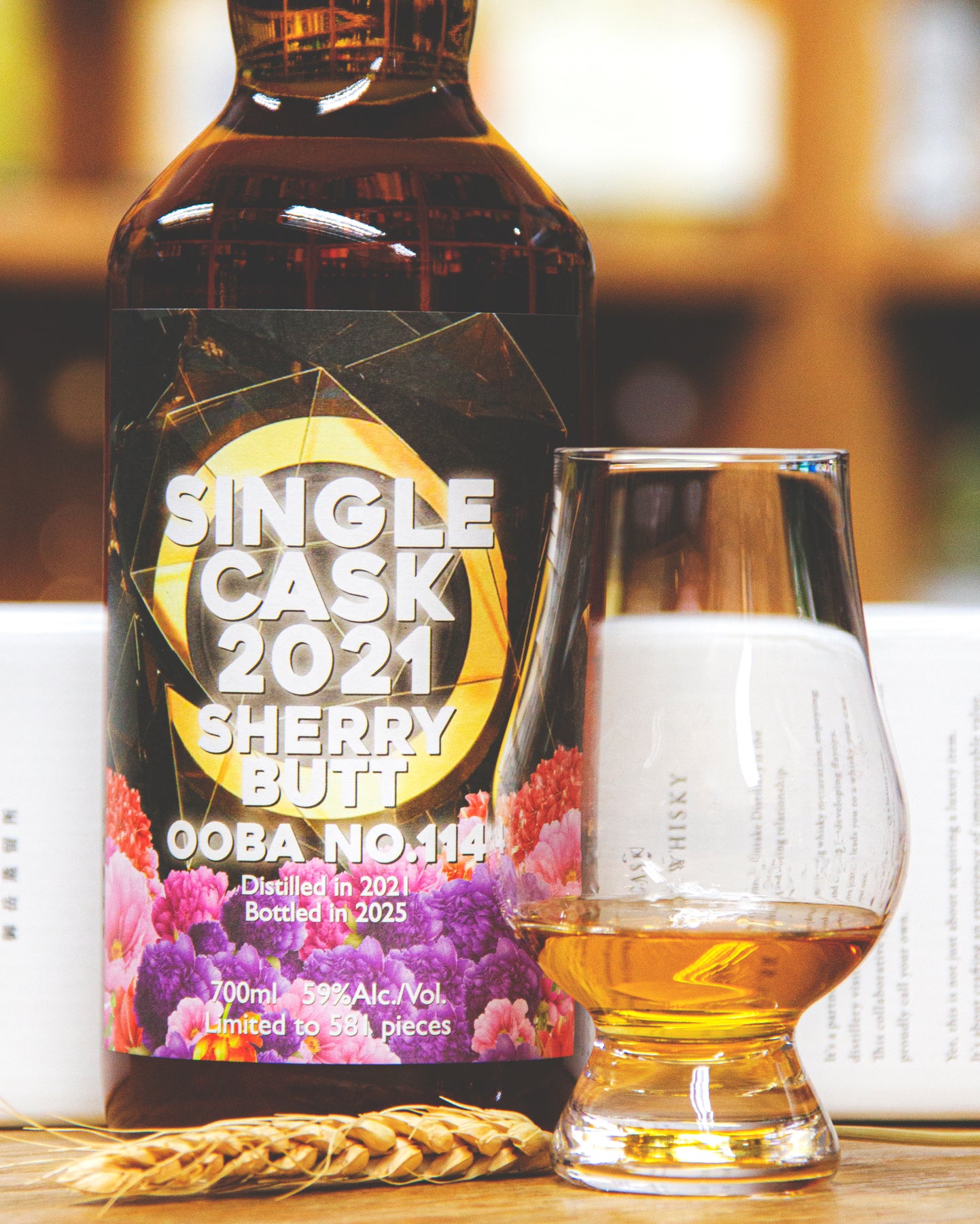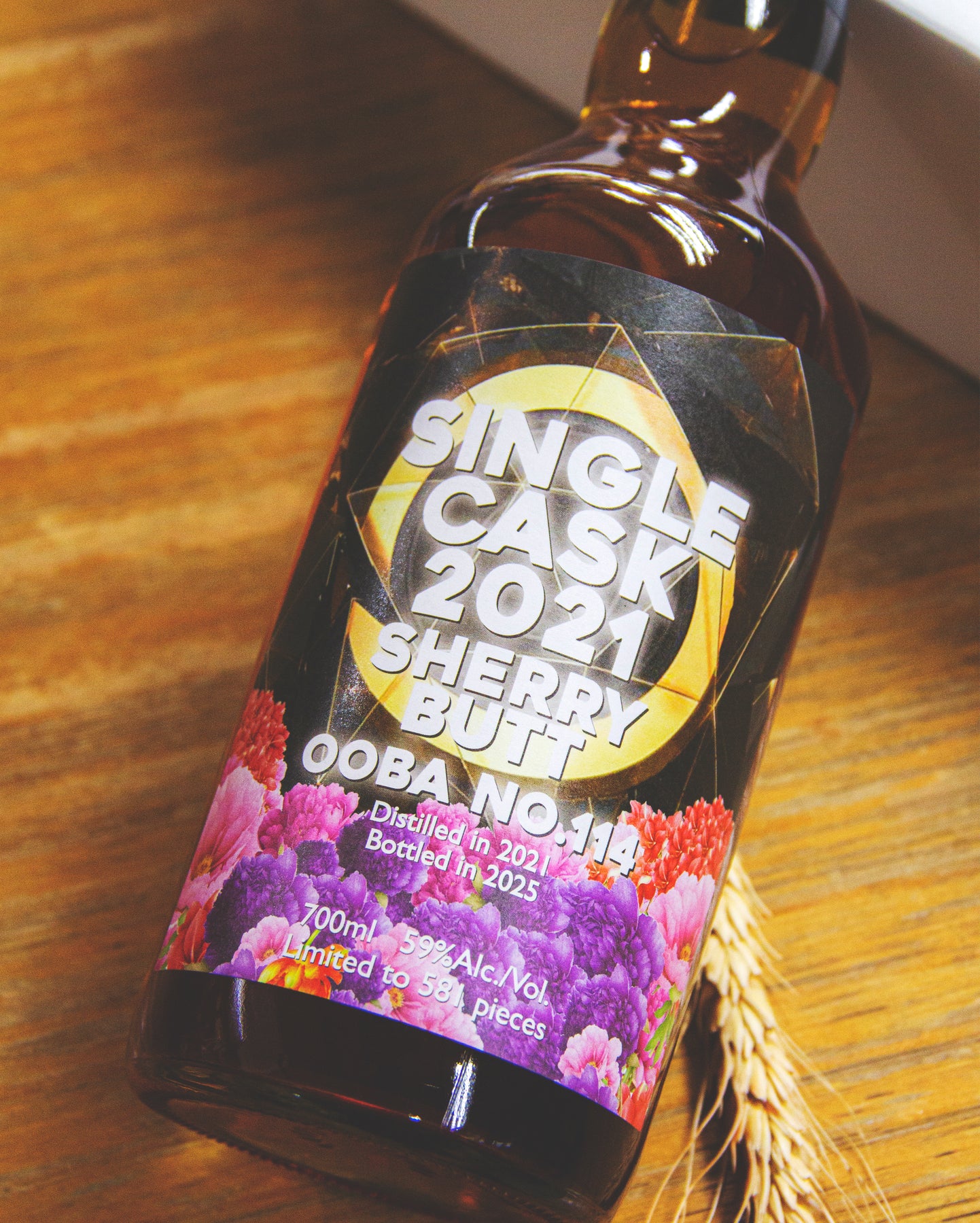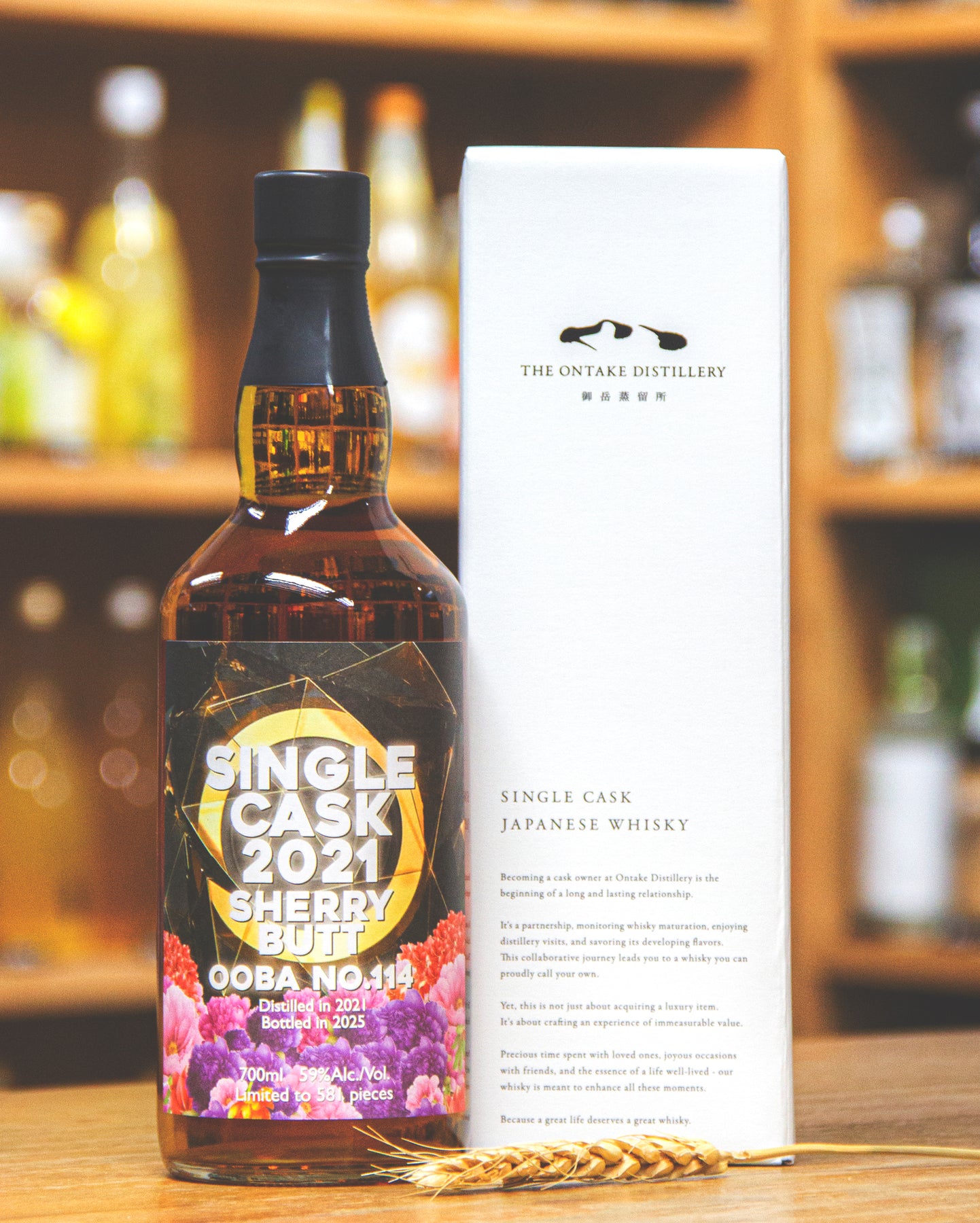 秋風一起,很容易就會想喝一口烈酒御寒,正是時候開瓶這款御岳4年單桶作品。此酒由埼玉知名酒舖「おおば」選桶,內涵原酒於2021 年蒸餾,放置於雪莉桶熟成4年多的歲月,再於2025 年以原酒強度59% ABV裝瓶,限量 581 支。