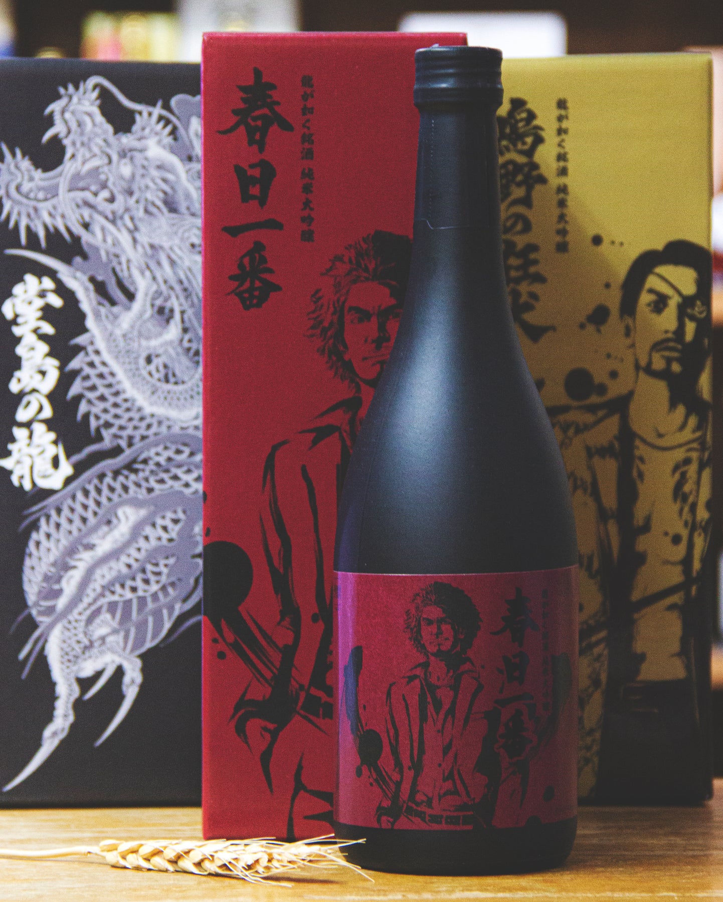 春日一番,帶點市井、熱血,並永遠有著善意的一個男人。他在人中之龍8中,與桐生一馬完成了黑道的世代交接,為機迷津津樂道。SEGA為了替其「人中之龍」遊戲系列宣傳,跟廣島的「賀茂鶴酒造」合作,推出了這款名為「春日一番」的純米大吟釀。要講此品最吸引人的地方,毫無疑問就是其最頂級的包裝設計!