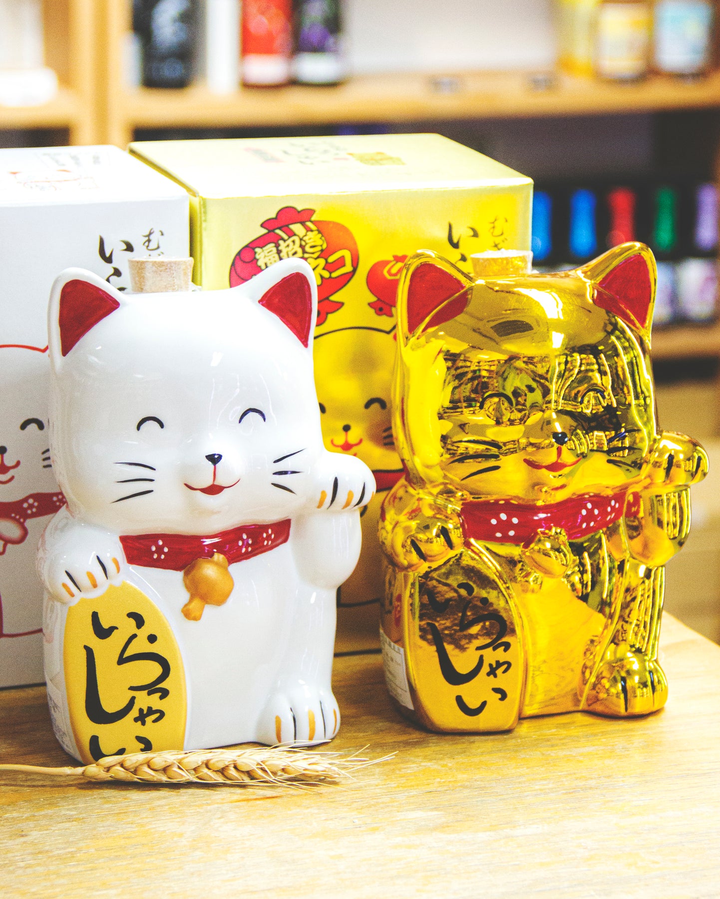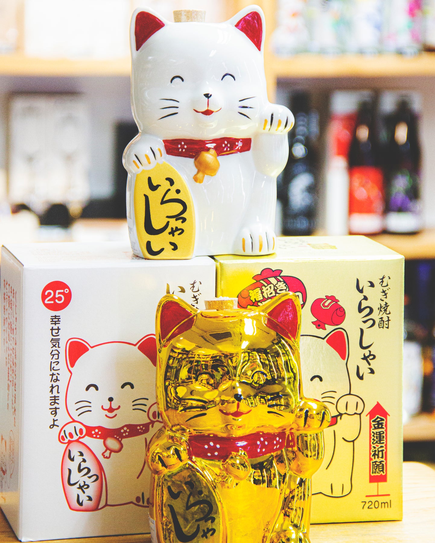 此款藤居酒造的開運招財貓,舉的是左手,右手拿著的金牌,寫著「いらっしゃい」(歡迎光臨/過來吧!)。如果你在找一款招徠客人、朋友甚至良緣的禮物,都用得著牠呢!金色的一款,當然就是在人緣以外,加添財運上升。人緣還是財運……小孩才做選擇,兩者我都要!
