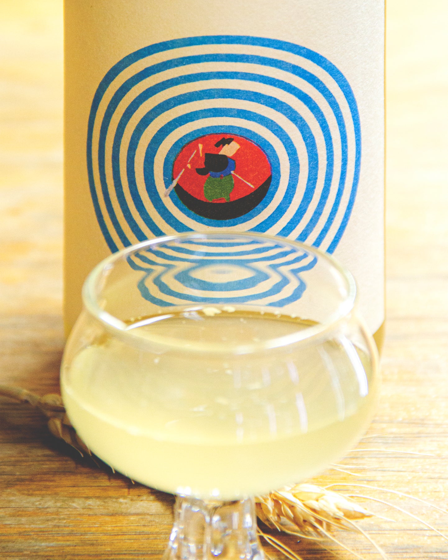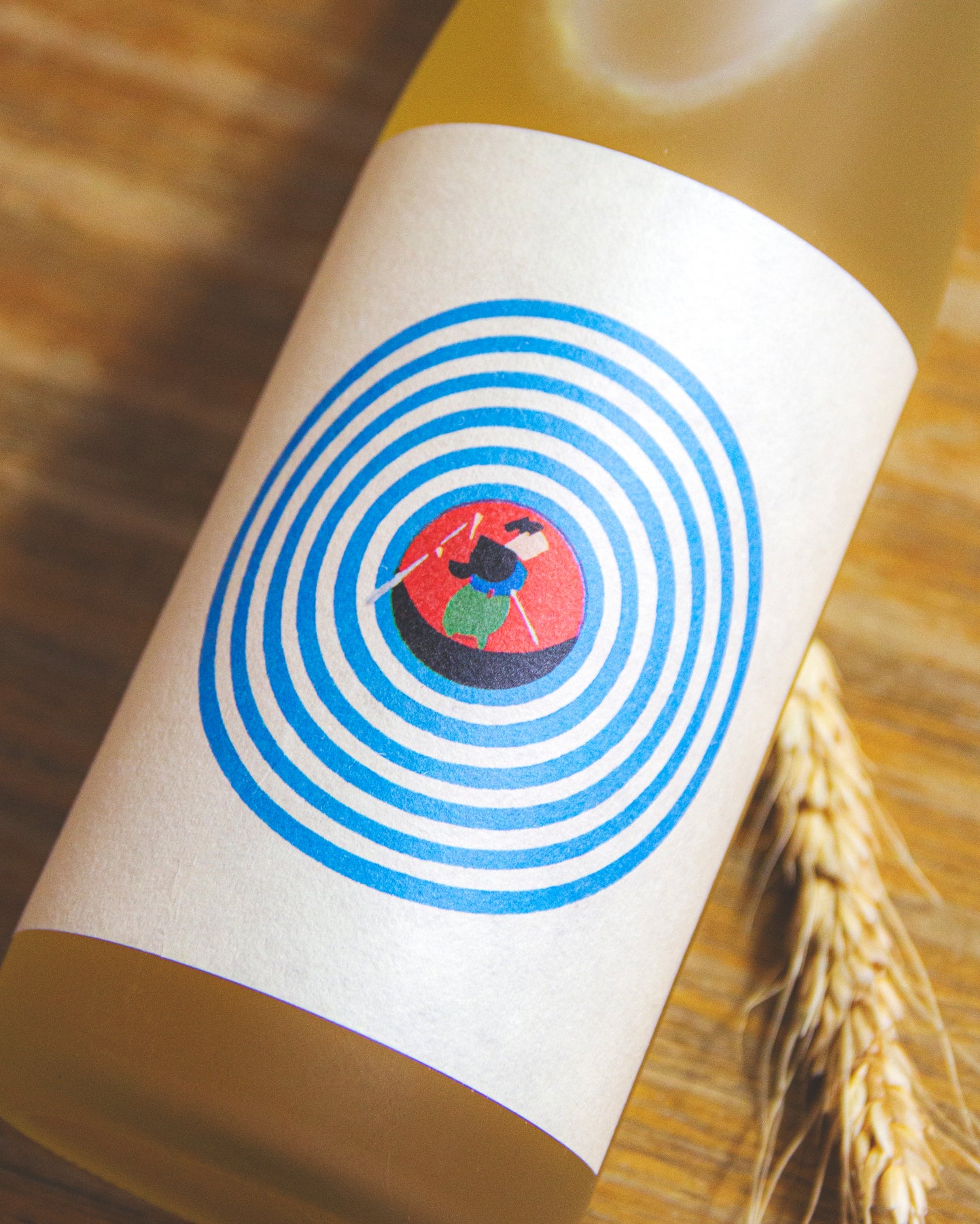 充滿藝術感的酒標上,是日本童話故事中的「一吋法師」,他只有3cm高,而且不會長大,他以碗為船、筷子為槳、針代替刀,離家旅行。最後於京都打敗惡鬼,保護了公主春姬,並最終與其結為夫妻。